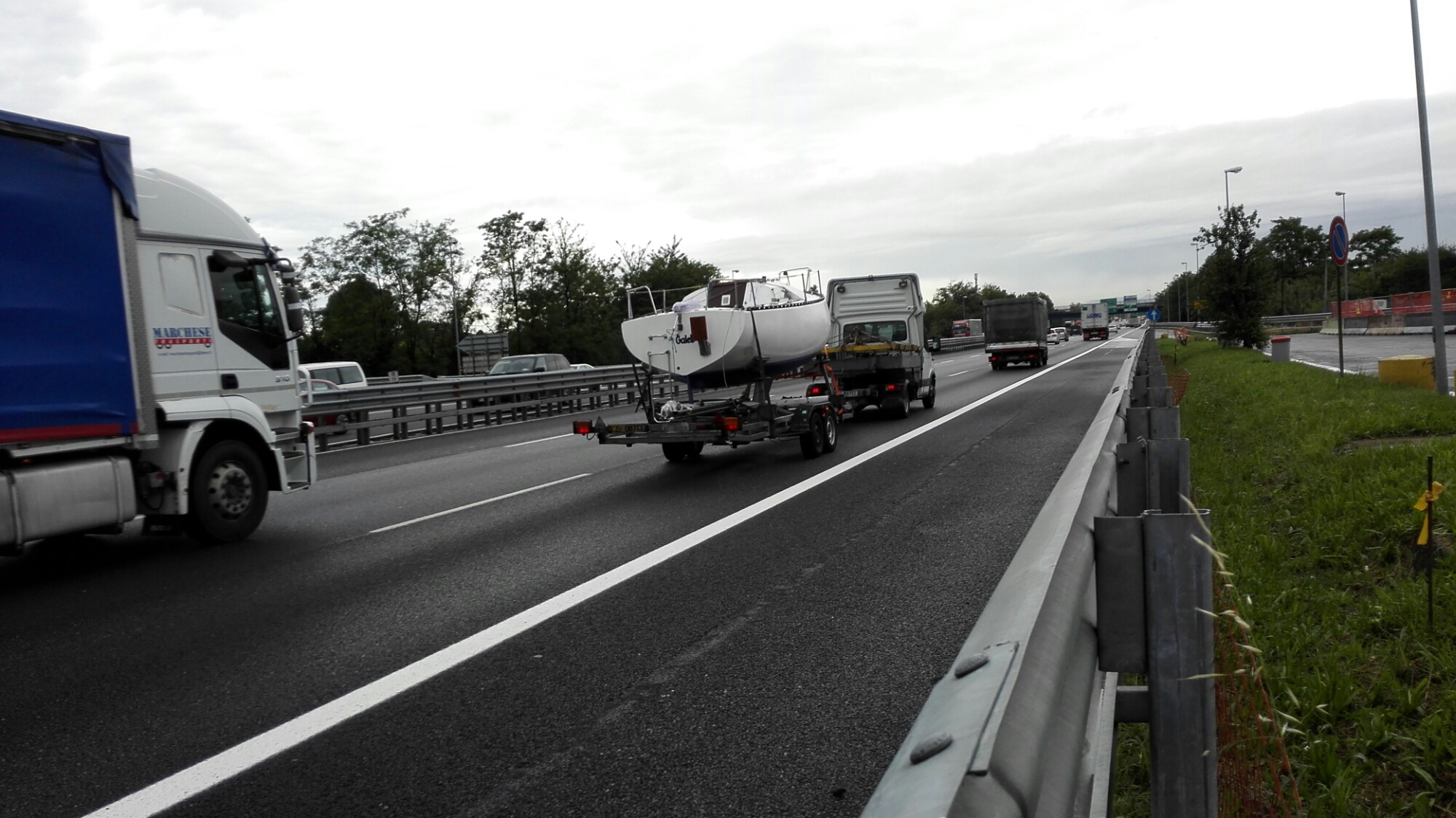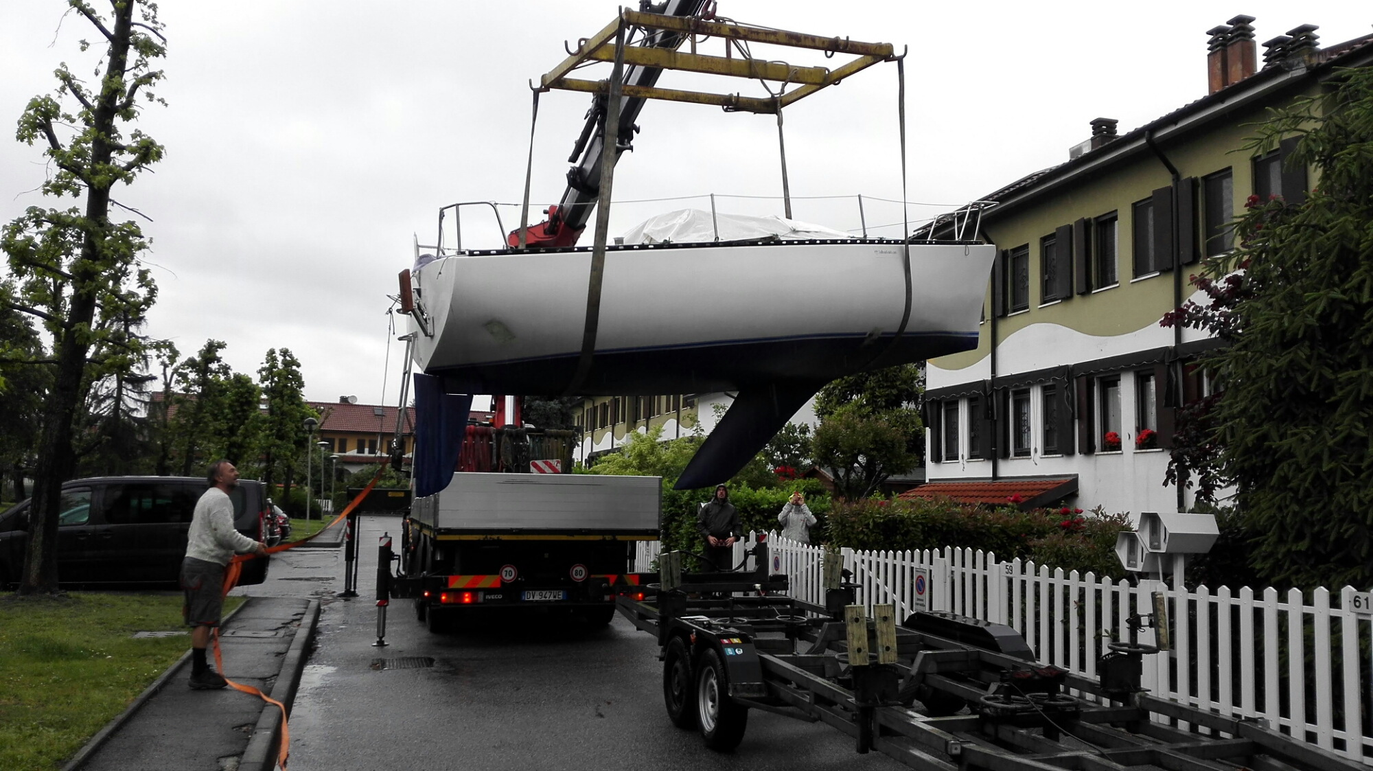 Mentre penso ad altri progetti, sono già in autostrada. Sta smettendo di piovere, ma verso il lago d’Orta, dove la gru è pronta a far galleggiare finalmente questa piccola barca a vela, si sta schiarendo il cielo.