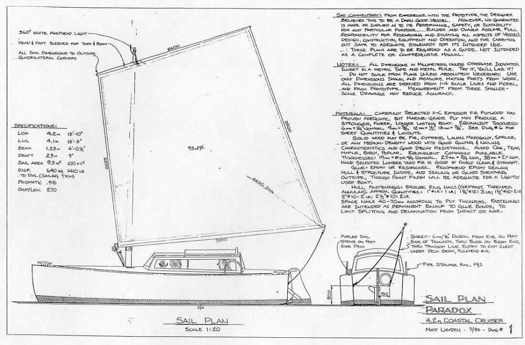 Paradox (15 piedi) ed Enigma (9 piedi) sono due progetti di Matt Layden. Sono barche semplici, piccole e collaudate.